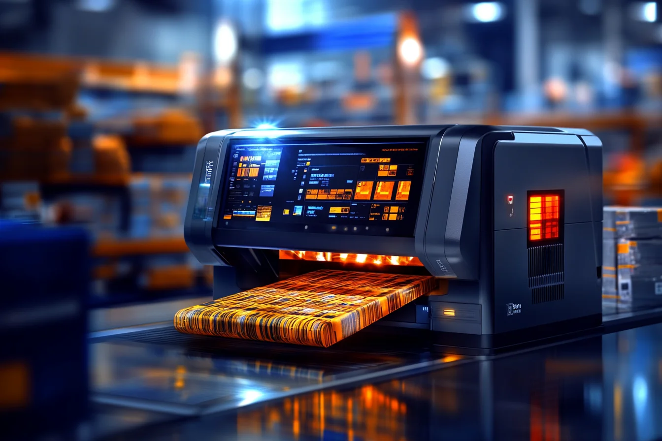 Nowoczesny skaner kodów kreskowych z wyświetlaczem wykorzystujący algorytmy AI do zarządzania logistyką w inteligentnym magazynie SoftwareStudio.